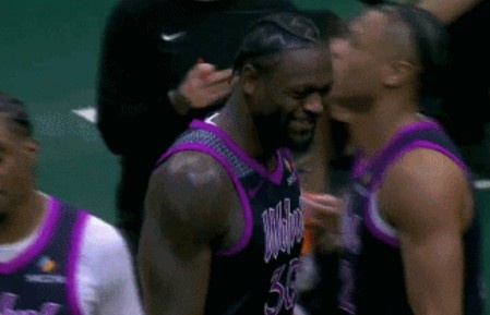 GIF-兰德尔持球刚起步突破森林狼叫停 兰德尔自己也乐了
