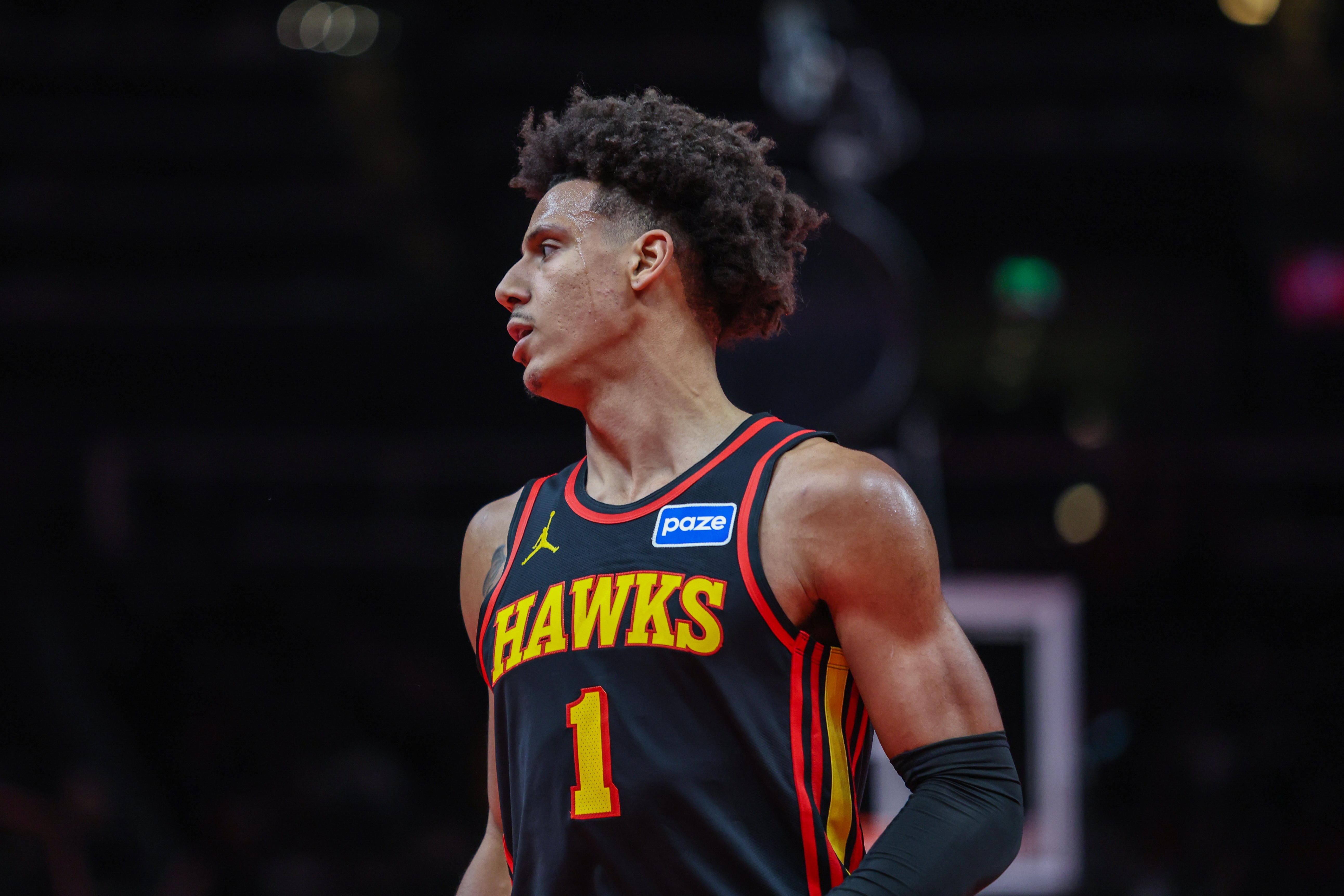 上半场,老鹰球员杰伦·约翰逊表现不佳,进攻端毫无手感,次节更是5中0没进球,在18分钟的时间里,投篮10中2,三分球4中0,罚球2中2,仅拿到6分2篮板6助攻1抢断的数据,正负值-18。
