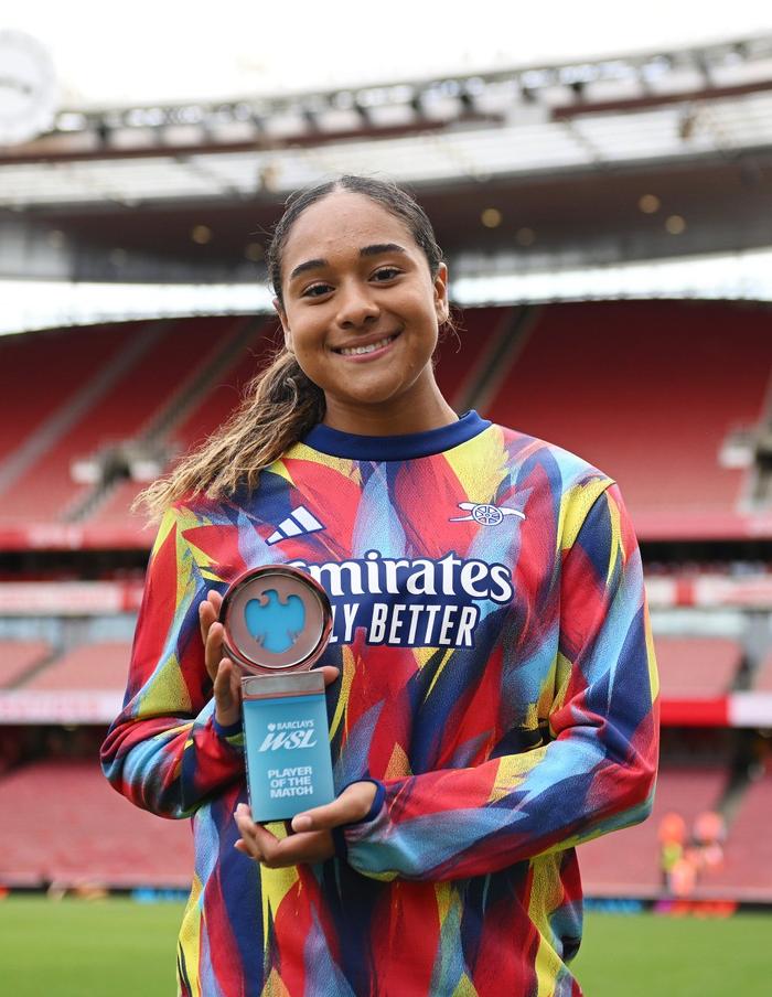 首秀为阿森纳进球的奥利维娅·史密斯当选全场最佳球员。创造女足运动新的历史标杆