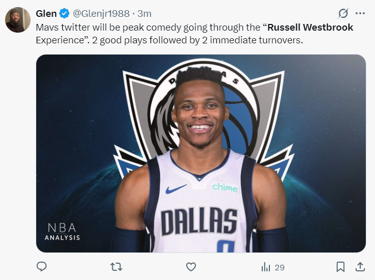 独行侠媒体已经发文招募了,因为独行侠正缺少一个持球者,欧文的伤势要进入赛季后才能康复,威少这样的策应者是独行侠最需要的。