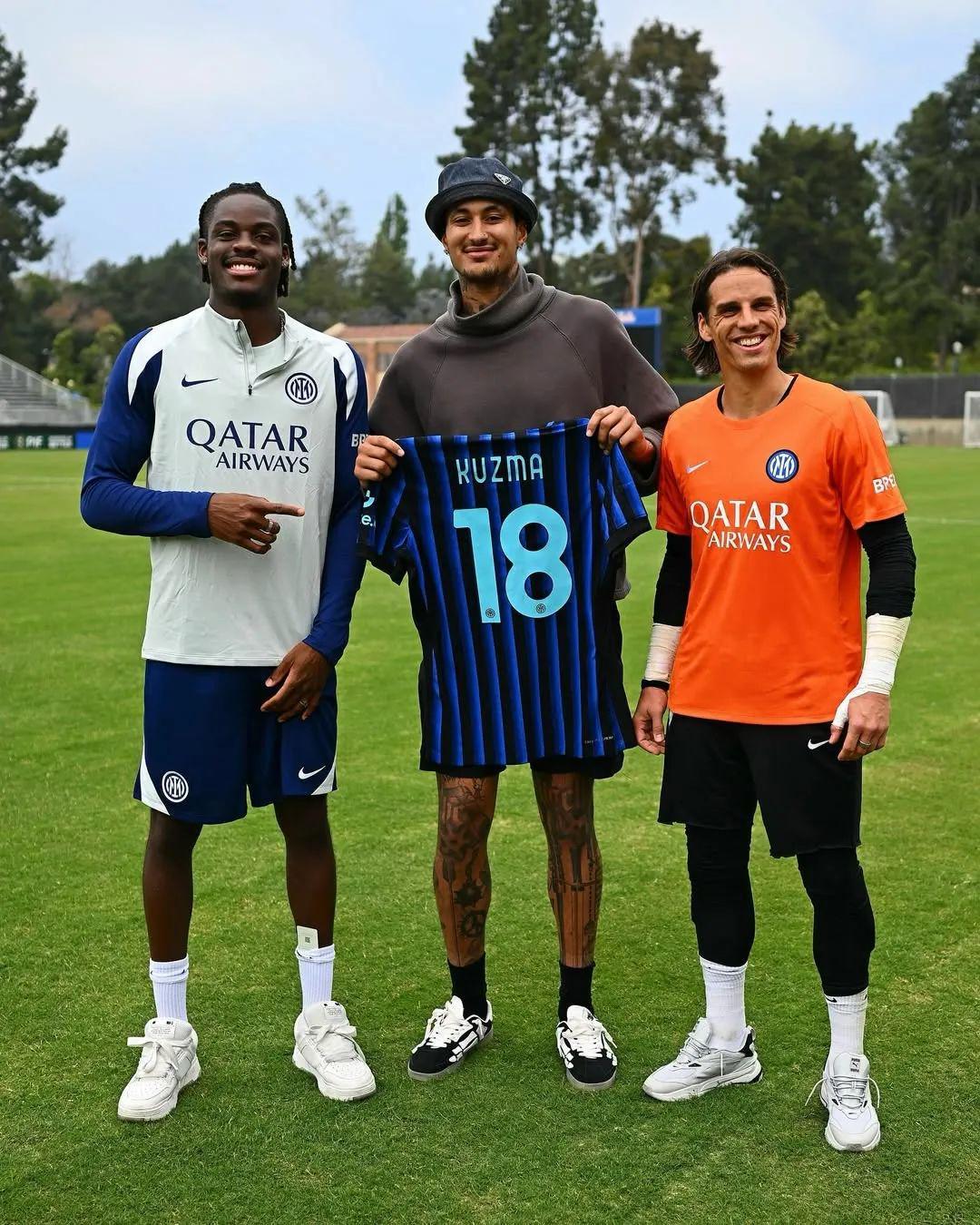 训练结束后,目前效力于密尔沃基雄鹿的NBA球星凯尔-库兹马也来到了球场,并且与一些蓝黑军团的球员进行了交谈。