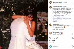 体育资讯7月4日讯 贝克汉姆更新社媒动态,庆祝与维多利亚结婚26周年纪念日。