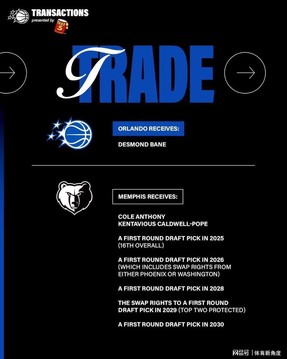 在这个炎炎夏日,NBA自由市场的风云突变总是令人猝不及防。令人意想不到的是,今年自由市场的第一笔重大交易竟如此迅速地尘埃落定,且规模之大,令人咋舌。据知名记者Shams报道,奥兰多魔术与孟菲斯灰熊已正式达成交易协议。灰熊方面,他们忍痛割爱了潜力新星贝恩,而从魔术手中收获了波普、科尔-安东尼以及四个宝贵的首轮选秀权,外加一个首轮互换权。是的,你没听错,这是一笔...