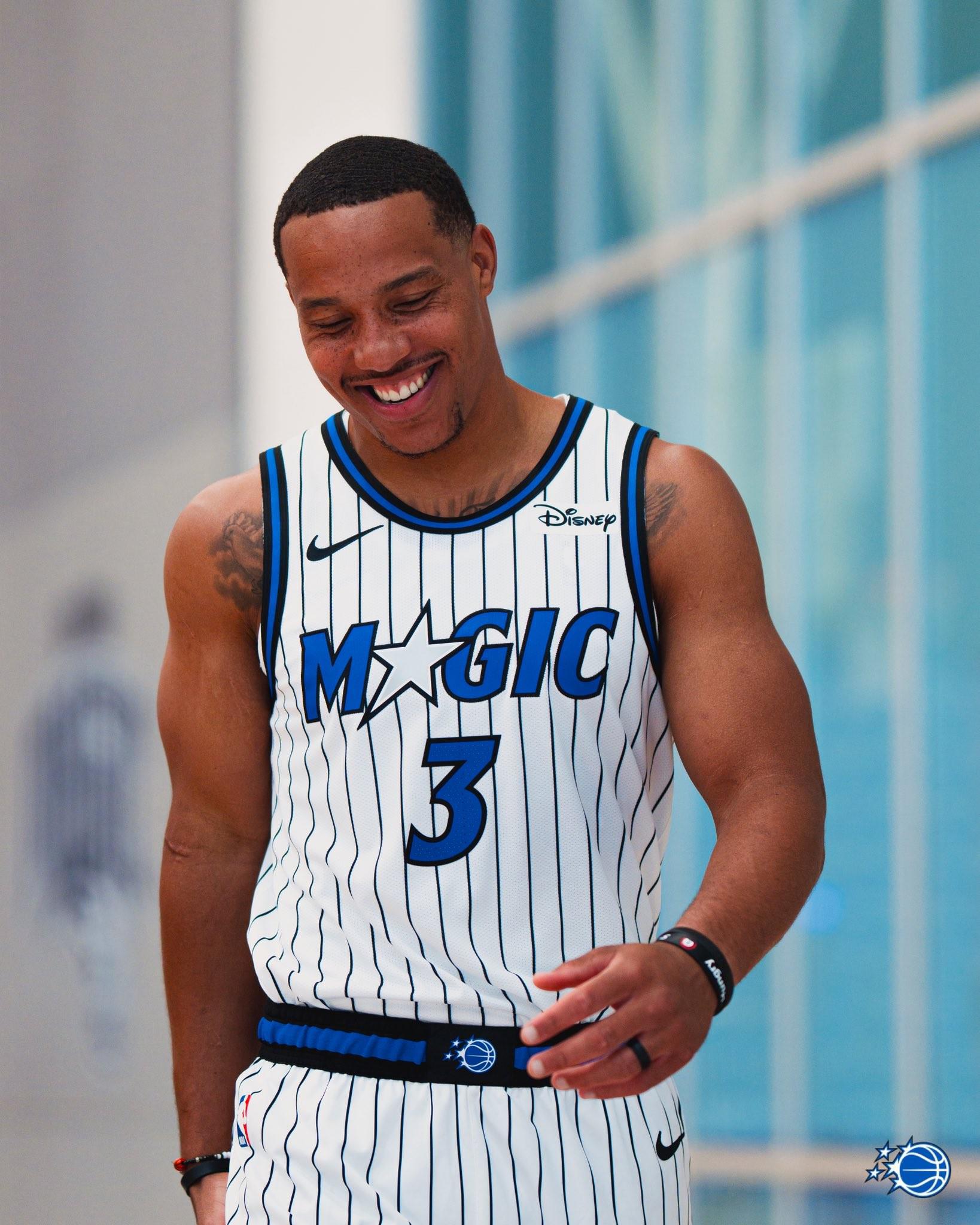 贝恩此次上身的为魔术队最新球衣,将在下赛季正式使用,该系列球衣以1989-1998年期间的球衣为灵感进行设计。