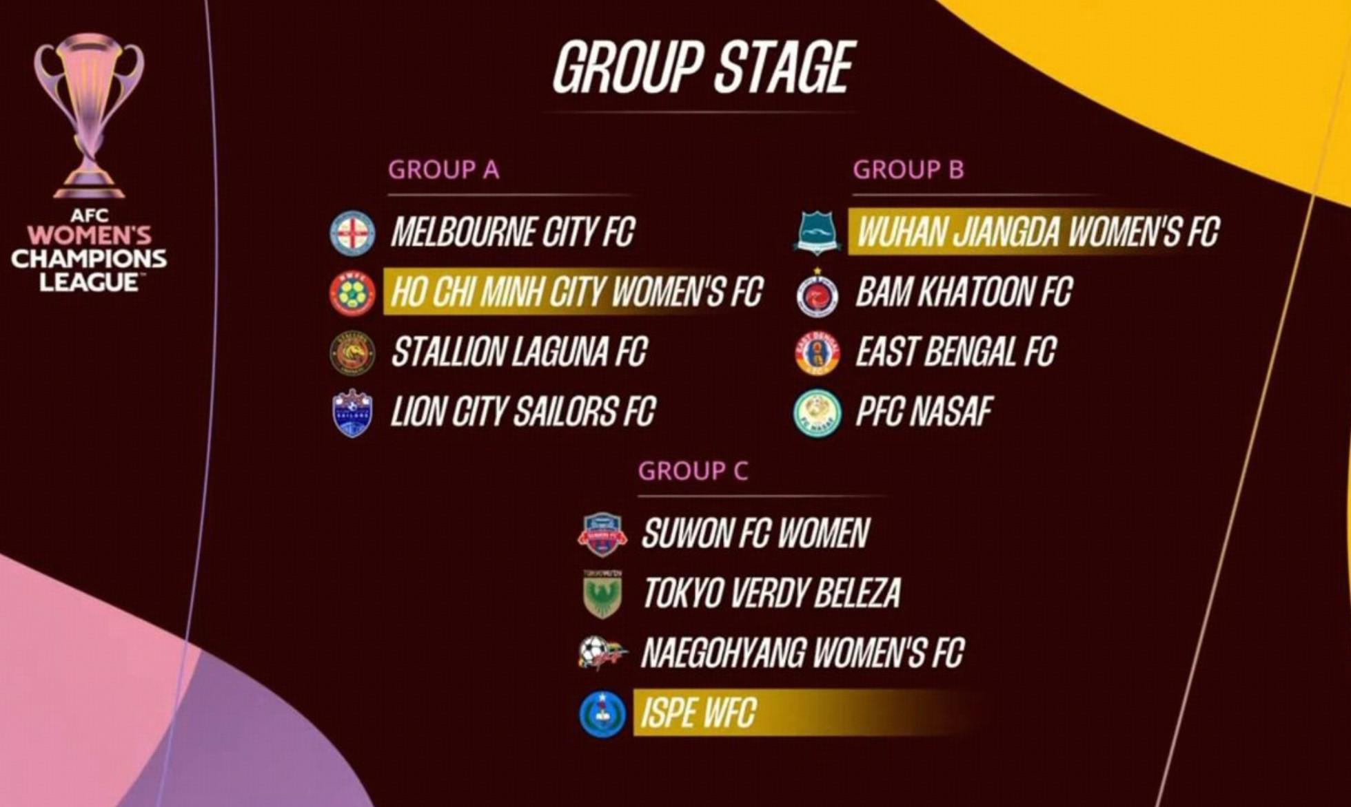 北京时间9月11日,女足亚冠精英赛的抽签结果出炉,武汉女足与巴姆卡通(伊朗)、东孟加拉(印度)、纳萨夫(乌兹别克斯坦)同组,C组水原(韩国)、日视东京绿茵美人(日本)、我故乡(朝鲜)同组。